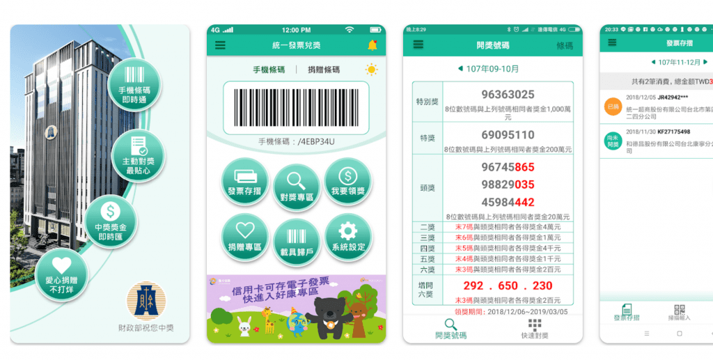Si vous utilisez l’application 發票存摺+統一發票對獎機 (Invos Invoice Passbook), vous pouvez scanner les reçus, suivre les factures cloud, vérifier les derniers numéros gagnants, obtenir les détails des factures et suivre les dépenses, ainsi que payer vos factures ou avoir de l’argent envoyé sur votre compte bancaire. Il existe également d’autres applications concurrentes :