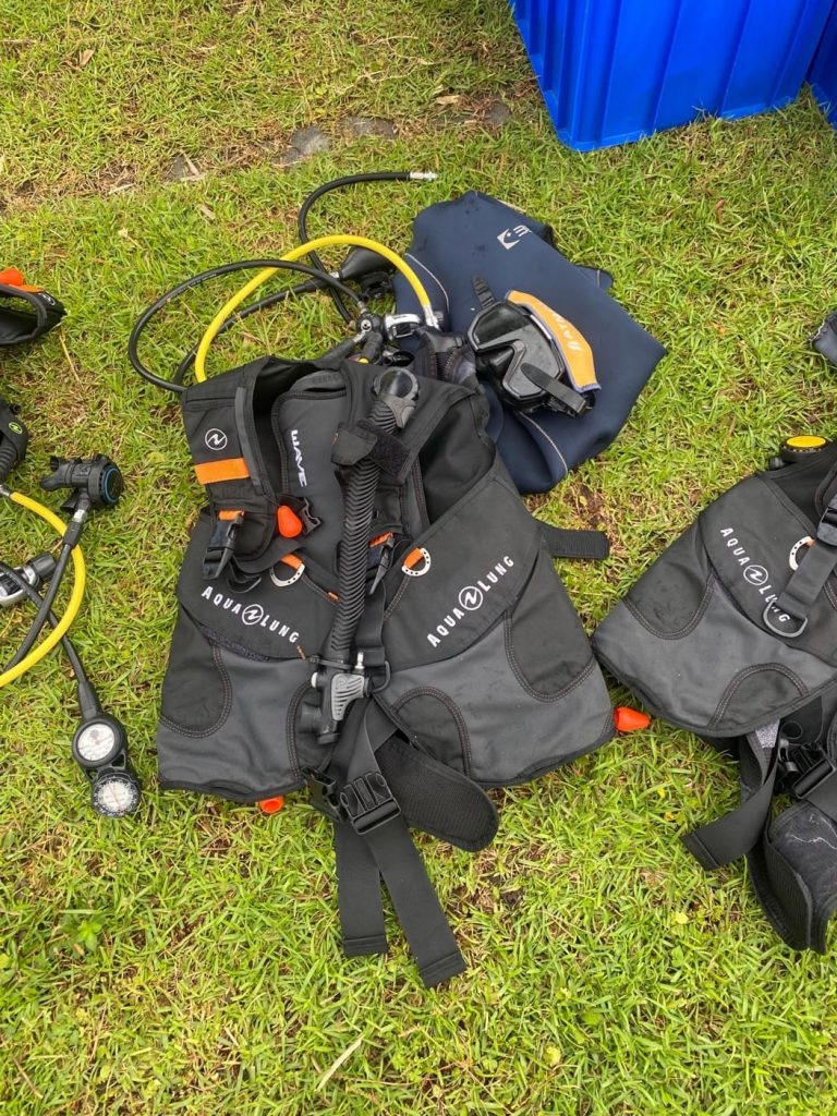 Nous avons donc commencé par un briefing des règles de sécurité et du matériel à utiliser. Une fois effectué nous nous sommes équipées avec une combinaison, un gilet de plongé, un masque, des palmes, des détendeurs et bien sûr la bouteille. A présent, nous étions prêtes à plonger !