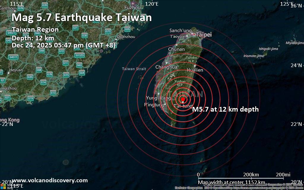 Un séisme de magnitude 6,1 a frappé le sud-est de Taïwan mercredi 24 décembre en début de soirée. Les autorités taïwanaises appellent à la vigilance, en raison d’un risque élevé de répliques au cours des prochains jours. Aucun blessé n’a été signalé à ce stade.