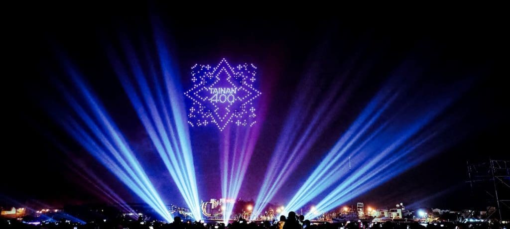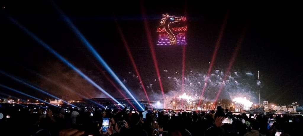 Toutefois, les grandes prouesses pyrotechniques, celle qui cloue le festival des lumières à Tainan, sont bien évidemment les feux d’artifices mais qui ont été les acteurs mineurs pour cette cérémonie de clôture. En effet, bien avant le début du spectacle, des drones ont sillonné le ciel nocturne de la ville pour nous livrer une splendide chorégraphie aérienne, nous illustrant les plus beaux symboles de Taiwan mais aussi de Tainan. Ces aéronefs ont su décoller les spectateurs en mettant en avant les richesses et l’héritage culturel de la région.