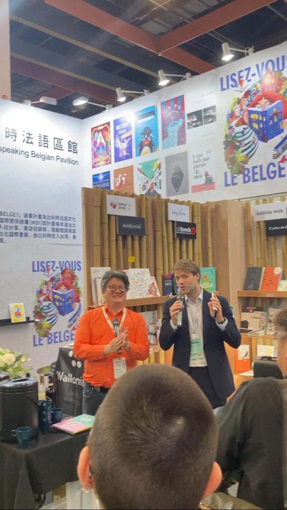 Ce moment a permis de faire de très belles rencontres, notamment avec Philippe Tzou, conseiller économique et commercial de la région, qui m’a présenté plusieurs illustrateurs et écrivains belges présents sur le salon, dont certains ouvrages sont traduits en mandarin.