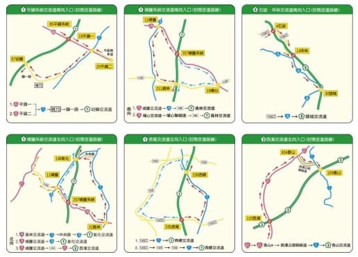 • Autoroute n°6 dans les deux sens : de Jiouzheng à Taichung