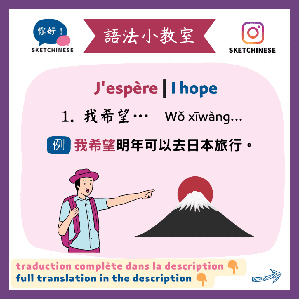 - Exemple : J’espère visiter le Japon l’année prochaine.