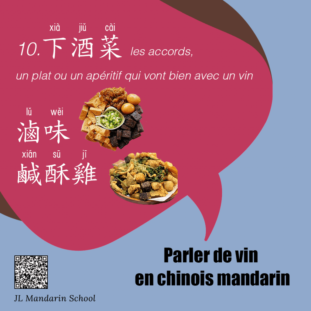 下酒菜 (xià jiǔ cài) : les accords, un plat ou un apéritif qui vont bien avec un vin