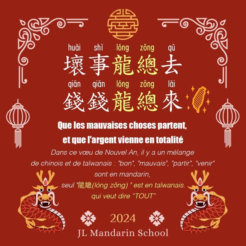 En Taïwanais, la prononciation de « 龍 (lóng) dragon » ressemble à la langue taïwanaise « 攏 (lóng) » qui signifie « tout ». Avec cette compréhension, vous trouverez facile à comprendre les phrases de vœux suivantes.