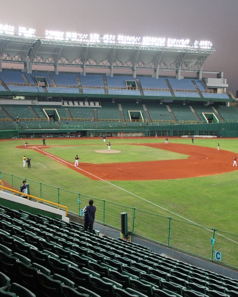 On assiste à un match au Chengcing Lake Baseball Stadium ! Situé près du magnifique lac Chengcing à Kaohsiung, ce stade emblématique offre une expérience unique aux fans. Avec une capacité de plus de 15 000 places, l’ambiance devient vite électrisante !