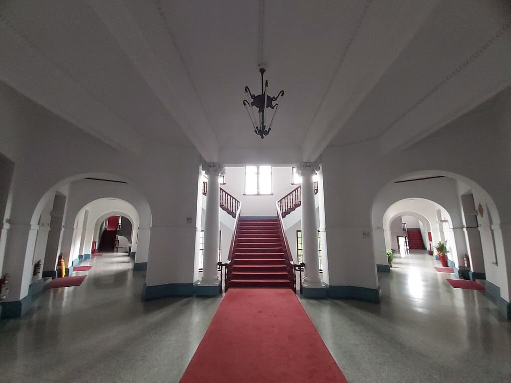 - L’entrée principale, marquée par un portique monumental et un dôme sphérique, soulignait l’autorité de l’institution.