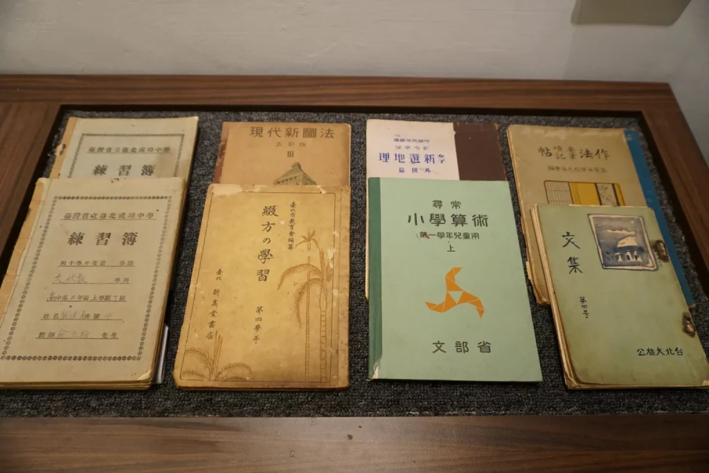 Ces ouvrages, souvent produits par des librairies privées ou le « National Compilation and Translation Institute » (國立編譯館), illustrent les méthodes d’enseignement de l’époque. L’exposition inclut également des documents tels que des cahiers d’exercices manuscrits des étudiants de l’époque, des livres illustrés pour l’apprentissage des caractères, et des manuels utilisés pendant la période japonaise, reflétant l’influence culturelle de cette époque.