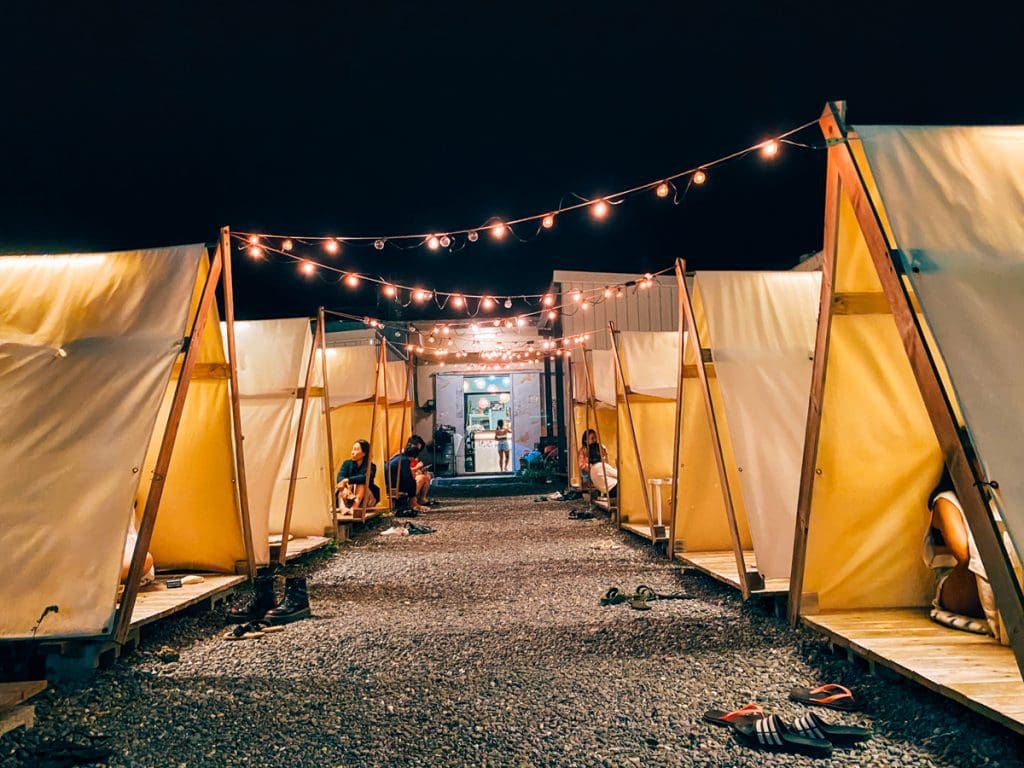Niché entre les quelques aménagements de l’île, l’Oasis propose une collection de tentes privées entre lesquelles pendent des guirlandes lumineuses. Chaque tente devient une petite escapade où les visiteurs peuvent déguster un cocktail dans un cadre paisible et attrayant.