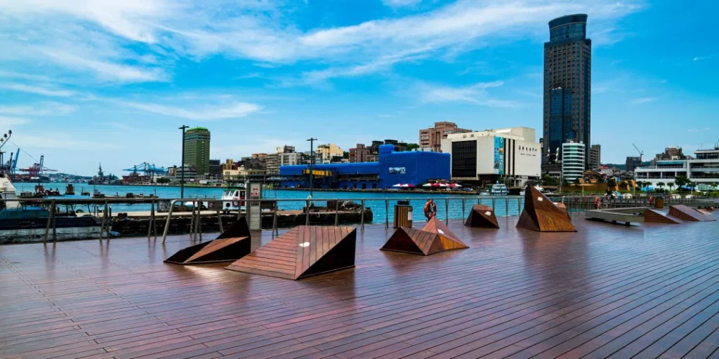 La plupart des visiteurs admirent le port depuis la place Guomen, qui se trouve juste à côté de la gare et abrite le musée de la culture et de l’art océanique, Keelung 1915. Ensuite, ils si se rendent jusqu’à Maritime Plaza à quelques centaines de mètres. Outre la vue sur le port, la place possède plusieurs statues et installations d’art 3D, dont la plupart s’éclairent la nuit. La nuit est vraiment le meilleur moment pour visiter les lieux. En effet le centre culturel de Keelung, le centre commercial de la côte est de Keelung, le port de Keelung et d’autres bâtiments le long du port s’illuminent tous. Et régulièrement de nobreuses animations et jeux de lumières sont projetées. N’hésitez pas à consulter les dates de ces événements.