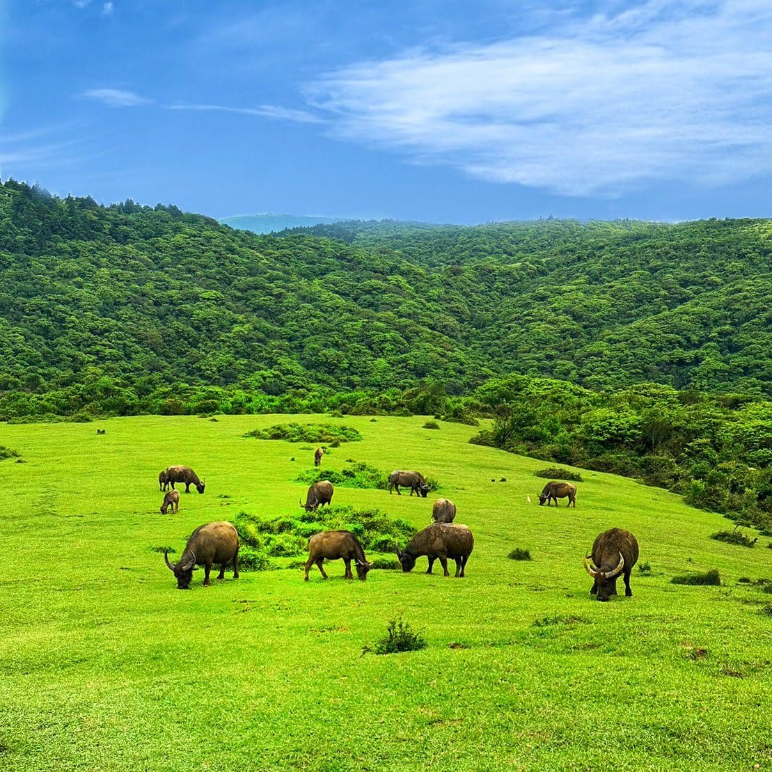 Le sommet suivant, Mont Qixing (七星山主峰), est le plus haut du parc, et probablement le plus populaire. Vous y trouverez beaucoup de familles et de randonneurs qui pique-niquent en admirant la vue. Si vous vous y rendez le weekend, il est très probable que vous ayez à faire la queue pour prendre une photo au sommet. Suivra Mt Qixing East, avant de suivre un chemin pavé traversant les bois pour vous mener à Qiantiangang et ses pentes plus douces et verdoyantes. Les buffles d’eau et les boeufs de Tajima habitent ces quartiers paisibles.
